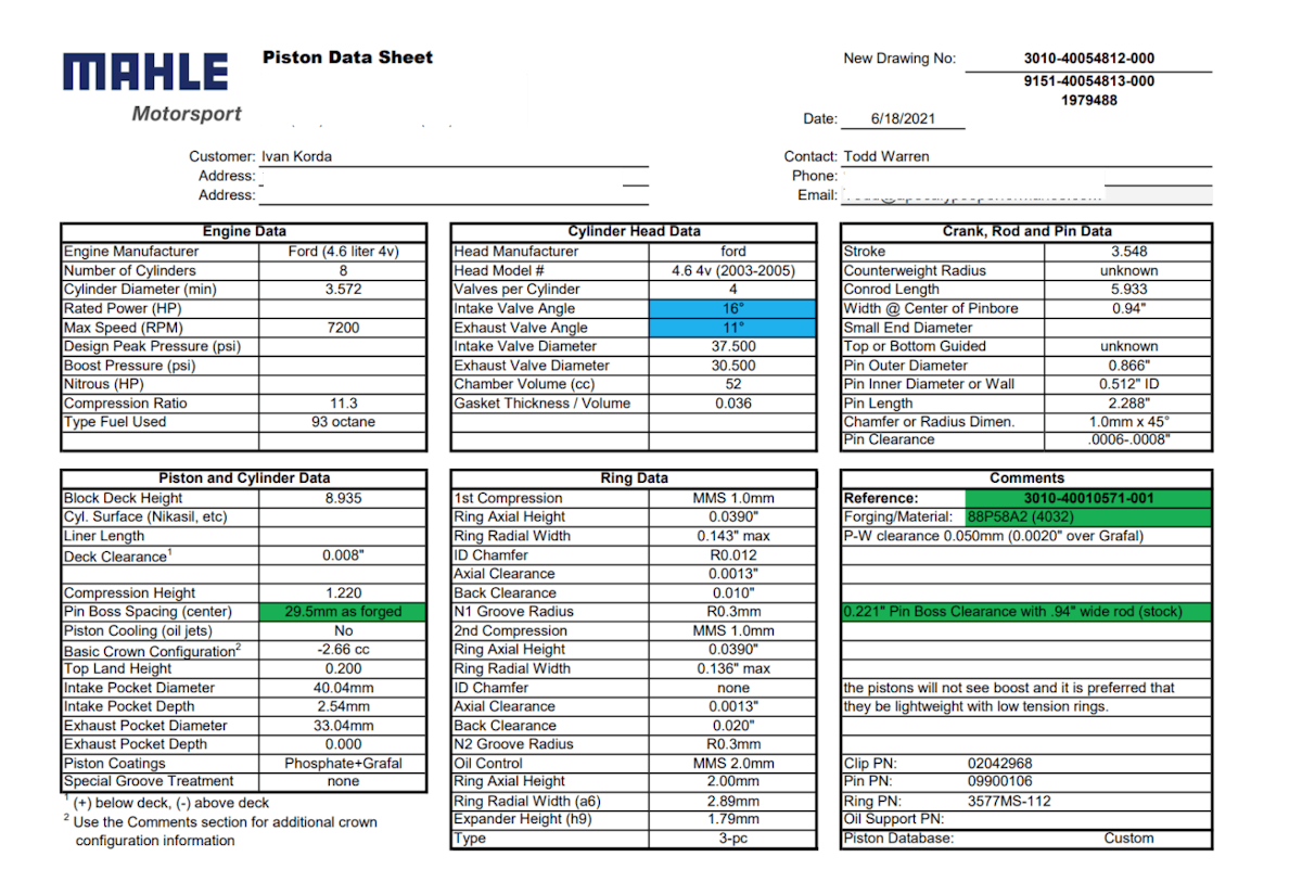 Warren says the only pistons available in the desired compression ratio are heavier pieces designed for boost. So, they instead went the custom route with MAHLE Motorsport to get the weight down and compression up. “We wanted 11:1 — or a little more — to maximize the power. Ivan was a little concerned about going any higher than that, considering he is going to run it on 93 pump gas. But, I was willing to go to 11.5:1,” says Warren.
