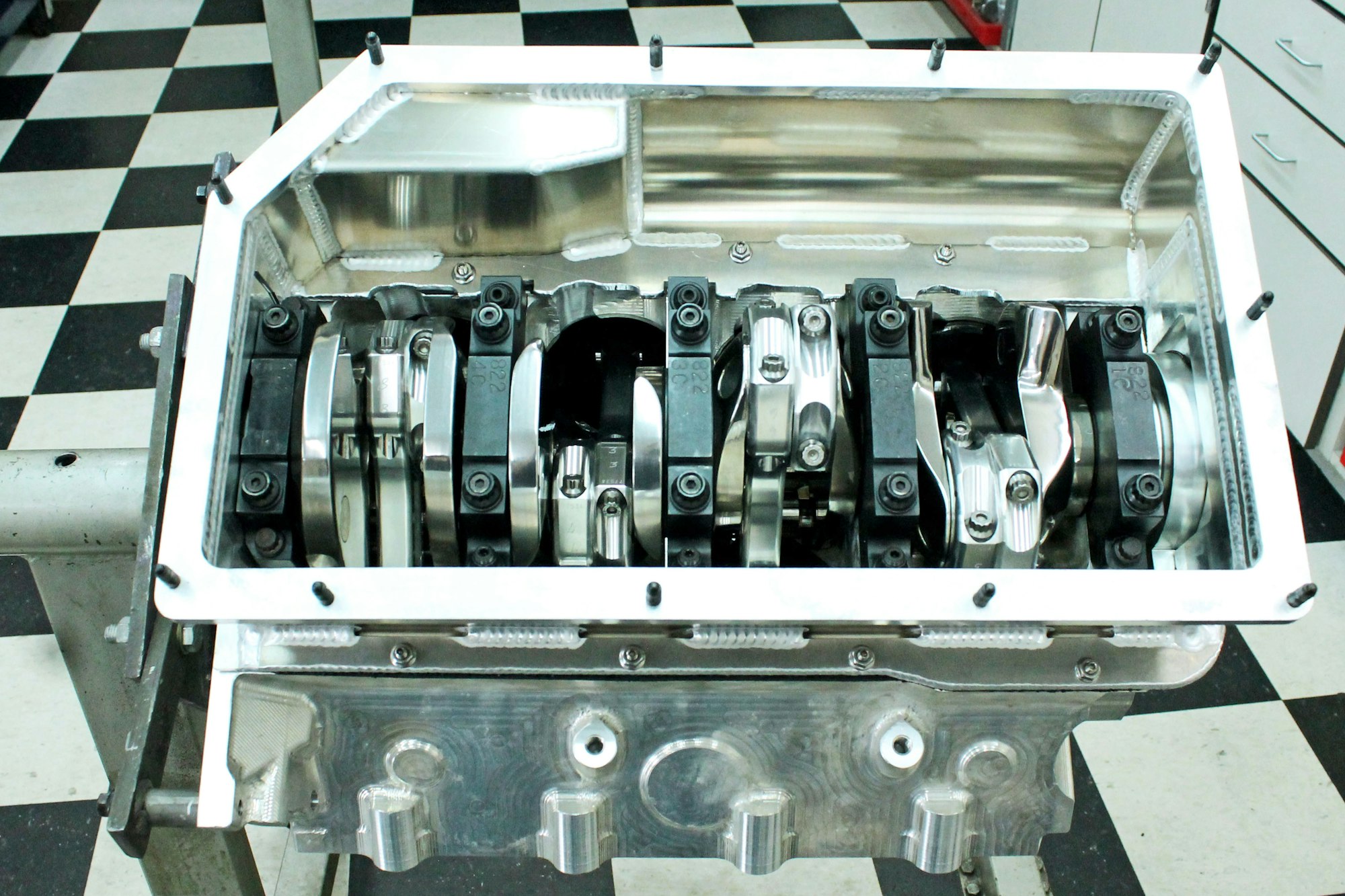 “The two-piece design allows us easy access to check bearings on the engine, without having to pull the oil pan. The bottom piece of the pan comes off and is sealed with a large O-ring, allowing for quick removal.”