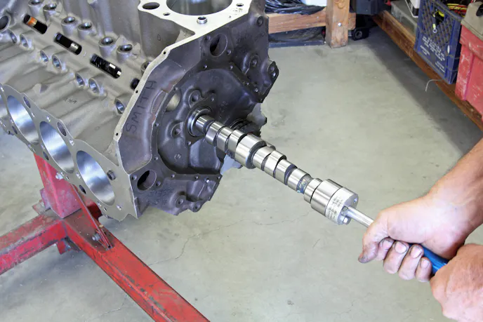 We’ve learned to always check a new camshaft in an engine with new cam bearings for proper fit before installing the rotating assembly. A good engine builder will tell you this avoids issues of discovering one cam bearing is too tight, preventing you from installing the cam. This happens more often than you might think. Often, the bearing must be replaced, and having to work around the crank and rods is a hassle. By installing the cam first, you avoid that dilemma. This tip came from our friends at Jim Grubbs Motorsports in Valencia, California.
