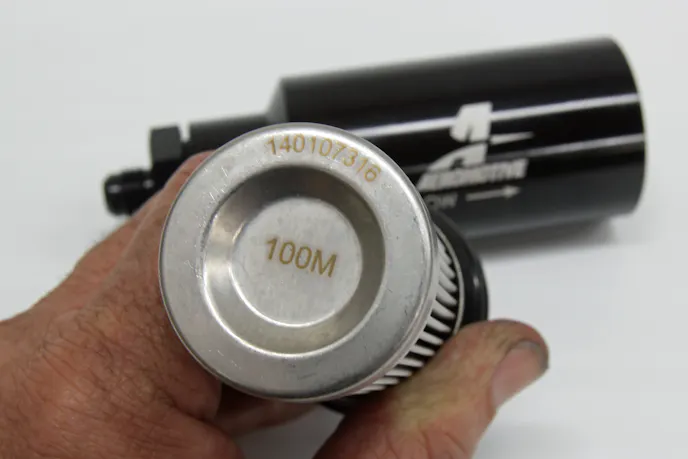 Here’s where the confusion begins. High-pressure electric fuel pumps need a 100-micron filter on the inlet side to remove the big chunks of dirt and debris before it gets into the pump. Because these 100-micron filters are less restrictive, this reduces the inlet restriction, allowing the pump to operate correctly. If the pump is restricted on the inlet side with a finer filter, this radically reduces the pump’s ability to function properly.