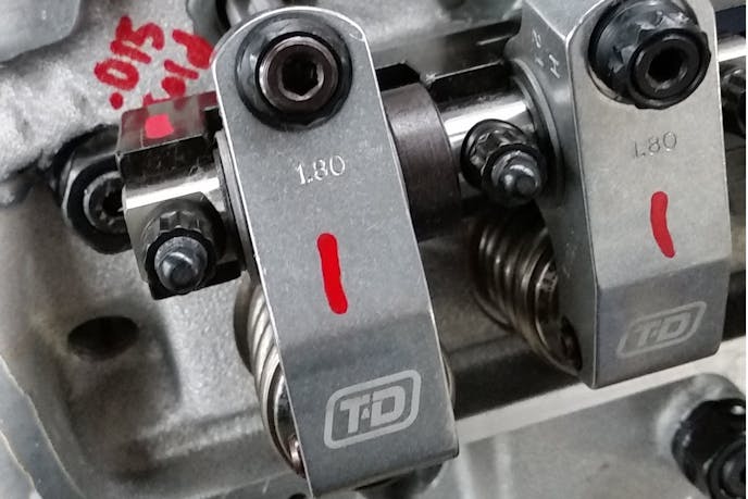 Riding the lobes are BAM Products lifters, which you might not have heard of yet, but we’re betting you will. Trovato claims they are outstanding, available, and consistently high quality, which seems to be a rarity in the lifter market lately. Joe Hornick Enterprises supplied the PSI valve springs, retainer, and keepers- which are their high endurance units. The lifters are connected to the 1.8:1 ratio T&D shaft rockers by custom-length Manton pushrods.