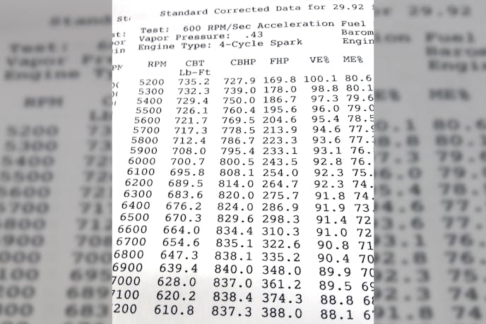As you can see in the dyno chart, the engine pulls right up to that 7,200 redline, still making 837 horses way up there. Typically big-inch engines don’t sing past 7,000 with ease, and few keep making power up there. This one is very comfortable in the higher ranges, power-wise. We’re wondering how the suspension under that Cutlass will like that 735 lb-ft at launch.