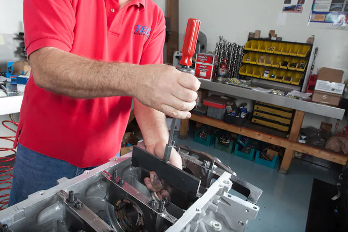 “We built it like it’s going to be a race engine. Checking clearances and adjusting for them with the bearing dimensions, honing the cylinders with a torque plate to get the correct piston-to-wall measurements, and setting the ring gaps where we wanted them,” says Kovacs.