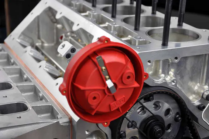 Jesel’s cam-driven distributor setup is used for optimum timing accuracy in this application. By driving the distributor with a belt from the camshaft nose, timing imprecision is minimized.