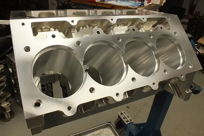 Dart's LS Next2 billet block is designed from the outset to withstand the rigors of serious competition. The bare block received a set of sleeves to accept the Diamond hard-anodized pistons.