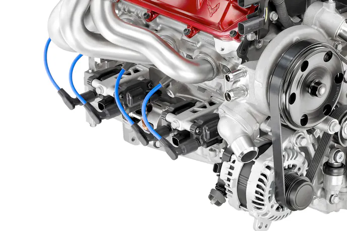 With its mid-engine configuration, the symmetrical intake port design — which goes all the way back to the first LS1 — makes it easy to merely spin the intake manifold around 180-degrees to point it toward the rear of the engine. The LT2 intake is also taller and sports equal-length intake runners. Combined with the equal-length tubular exhaust, these factors could be the primary contributor to the added 25 horsepower.