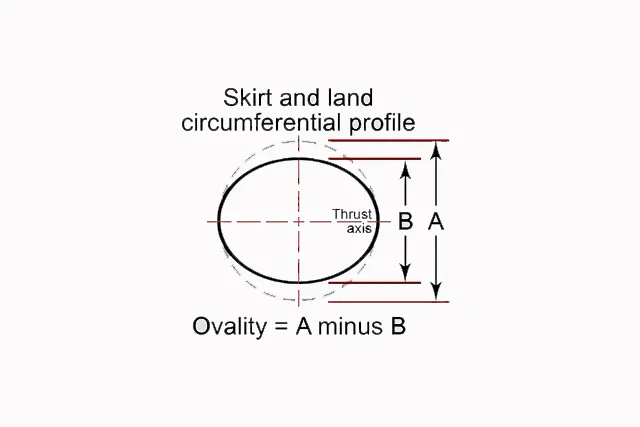 Ovality is used to address piston expansion from heat. It brings a controlled one-dimensional solution to the amount of contact the piston has on the thrust face. And it offers the strength you would expect to be missing from the removal of a full round skirt. FSR (Forged Side Relief) skirts are actually stronger than full round designs, but they require more fine tuning of the skirt profile to match full round wear characteristics.
