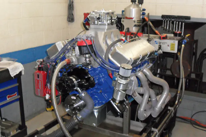 We took the engine to the dyno to see what the end result would be. Remember something from earlier: the cylinder heads have big-block Chevrolet exhaust ports. So to fit the dyno, we used a set of long-tube headers with 2-inch primaries to a 3-1/2-inch collector, originally designed for a 1970 to ‘81 Chevrolet Camaro.