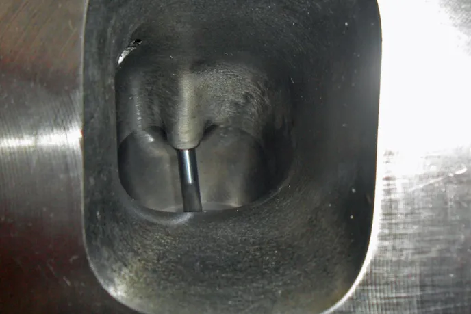 Maloney completed the combustion chamber work, valve guides and seats, then custom-made locating dowels to move the combustion chamber up in the bore by .050 inch. This was done to help promote airflow and valve fitment in the bore size.