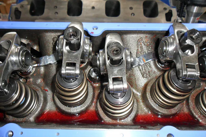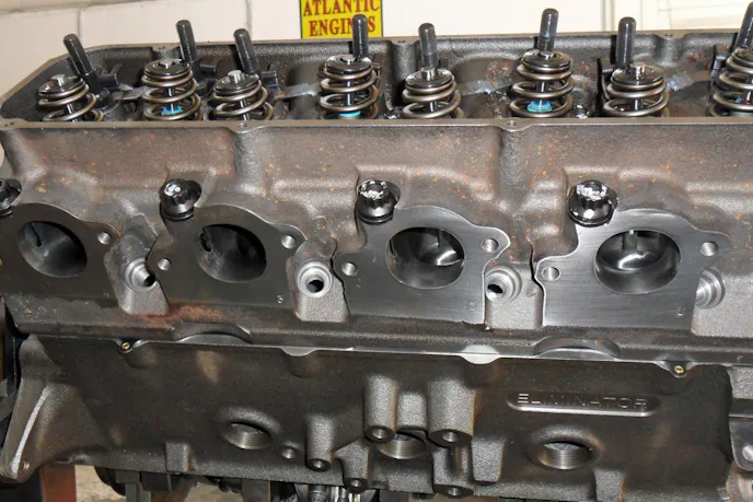 The first valve configuration is a 2.25-inch intake valve and 1.76-inch exhaust valve. The second features a larger 2.30-inch intake valve and smaller 1.72-inch exhaust valve. The heads retain the use of OEM guideplates, stud girdles, and valve covers. The stock fulcrum rockers can still be used as well. Flow numbers are strong with the intake ports flowing around 440 cfm.