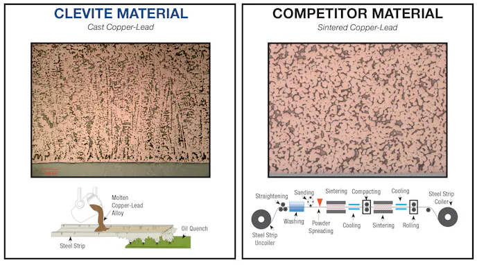Some of the technology and design that Begle is referring to is what MAHLE puts into its Clevite bearings. “Clevite is our Tri-Metal bearing with a steel back, and a cast copper-lead substrate with an overlay. The term Clevite is known in the industry for cast-copper lead, it is different than other manufacturers. Cast-copper lead is created by melting materials and then cooling them, putting in a strength grain, and then molting it at 2,000 degrees, which makes the bearing 20- to 30-percent stronger. It is so strong, it can handle 11,000 horsepower. Anytime you see that kind of horsepower, that is a Clevite bearing.”