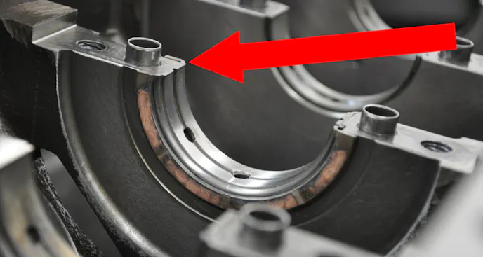 With more thermal growth in the main housings, the main bearings want to walk around inside the main bore. Begle did analysis on this and used a lot of engineering to determine there was not enough clamp load on the bearing when the block was at operating temperature. The thermal growth was too much with an aluminum block and the bearing would move or spin.