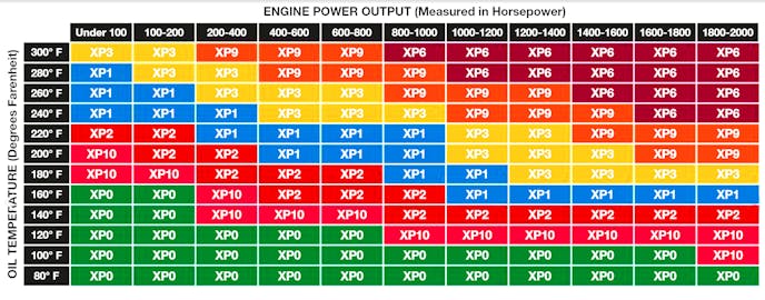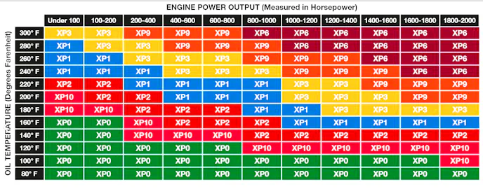 Driven created a generic chart that lists average oil sump temperature and power levels that combine to list what should be a safe oil type and viscosity recommendation. Driven uses its own designations but we’ve also included a chart that lists the XP names in standard viscosity format. This chart is just a recommendation of where to start, but you can assume it to be conservative.