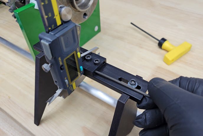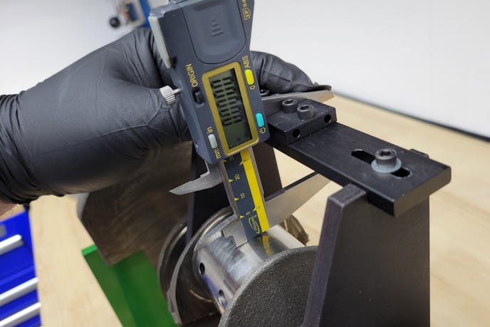 For the easiest reading, a set of digital calipers that you can zero out will work the best. But if you are in the “dials-don’t-run-out-of-batteries” camp (or even a weirdo who prefers Vernier calipers), the CSG-1 works just as well with those, albeit requiring a little bit of basic subtraction on your end. All you do is set the tool, attached to the bottom jaw of your calipers, on the main journals, sweep the top jaw over the the rod journal at the “top” of the crankshaft’s stroke and record the lowest measurement. That’s your zero. Then you repeat the process with the rod journal at the “bottom” of the crank’s throw and record the largest measurement.