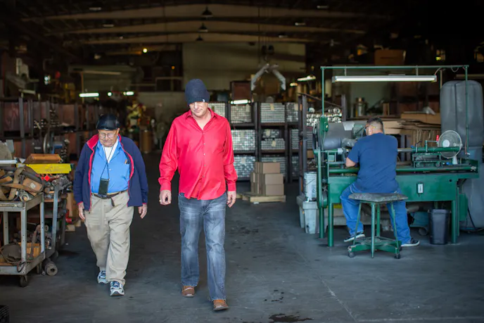 An important lesson is that you need to wisely spend your starting capital. Older, used machines generally have plenty of life left at a fraction of the cost of new. Pictured here are Ed Winfield's original cam-grinding machine (left), along with the cam grinder that Ed Iskendarian built in the 1940s. Photos Copyright 2019 Vigilants LLC.  All rights reserved.
