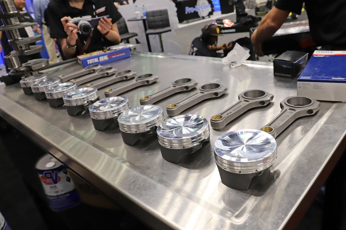 Attached to the crank are a set of Callies 6.125-inch Ultra Enforcer-series connecting rods. Forged from 4330V Timken Steel, the I-beam rods come fitted with L19 rod bolts and are rated for up to 250 horsepower each. A bit of quick math shows that 2,000 horsepower is no problem for these rods. Like the mains, the rods ride on a set of Clevite coated rod bearings.