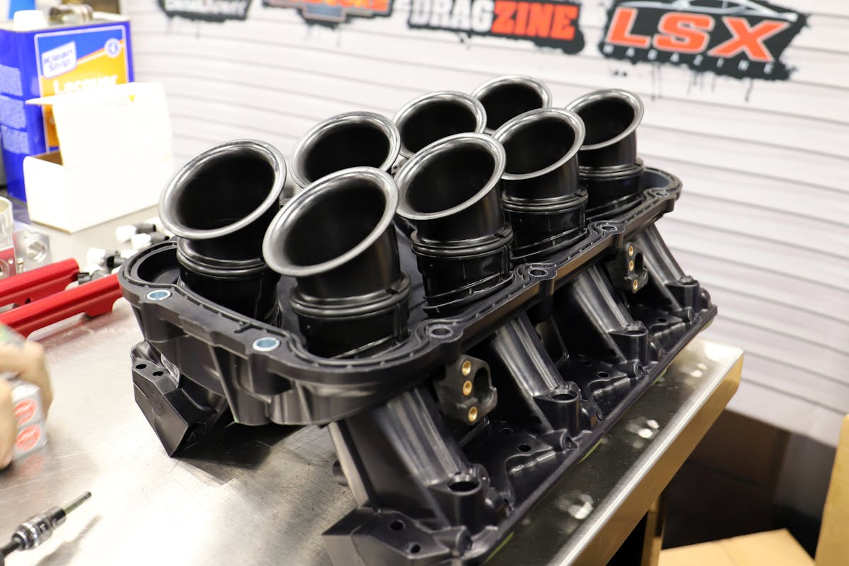 With such a stout long-block, we couldn’t just use any old induction system. So we opted for one of FAST’s LSX HR polymer tunnel ram intake manifolds. Besides being more resistant to heat soak, the modular polymer design features interchangeable runner stacks, that can be tuned to the desired powerband. For this situation, we left the included “long” stacks fitted.