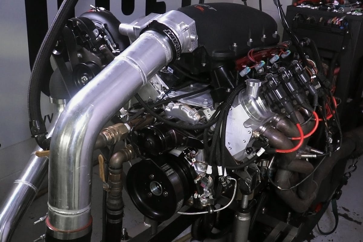 That necessitated having LME remove the V-30 105A supercharger and cog-drive, and instead install a smaller Vortech YSi-B supercharger. Featuring both a smaller volute and a smaller 94mm billet impeller, the YSi-B blower is rated at a maximum output of 1,400 horsepower — 300 less than the 105A. Besides the size and power difference, the V-7 supercharger transmission is much more suited to the street than the V-30, with a less-aggressive step-up ratio.