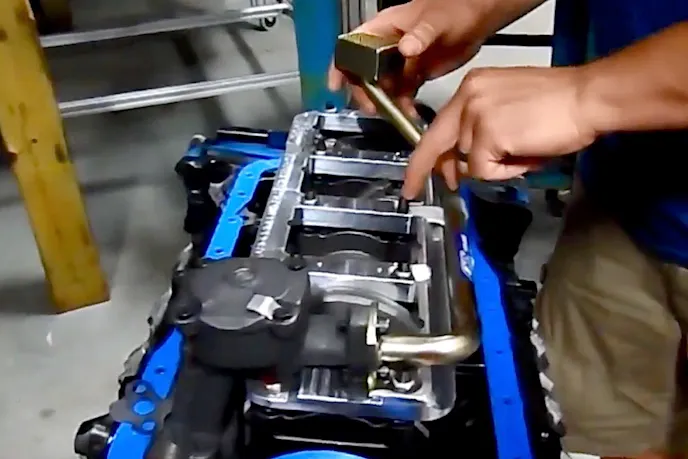 In wrapping up the installation, Tayor shared a couple of other tips. He has separate pickup and return fittings to support an auxiliary cooling system that doesn’t rely on the main oil pump. And he secures the pan with factory load-spreader rails between the pan and cap-screw washers.