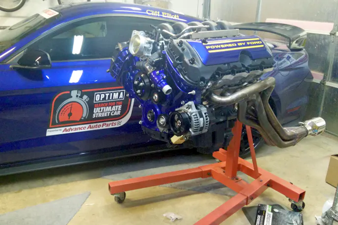 Elliott built the engine right before the 2016 SEMA Show to compete in Optima’s Ultimate Street Car Association event, held at the show. With the short-block already done, three weeks before the show, he received what he says was the first set of 5.2 Voodoo heads from Ford Performance available to the public.