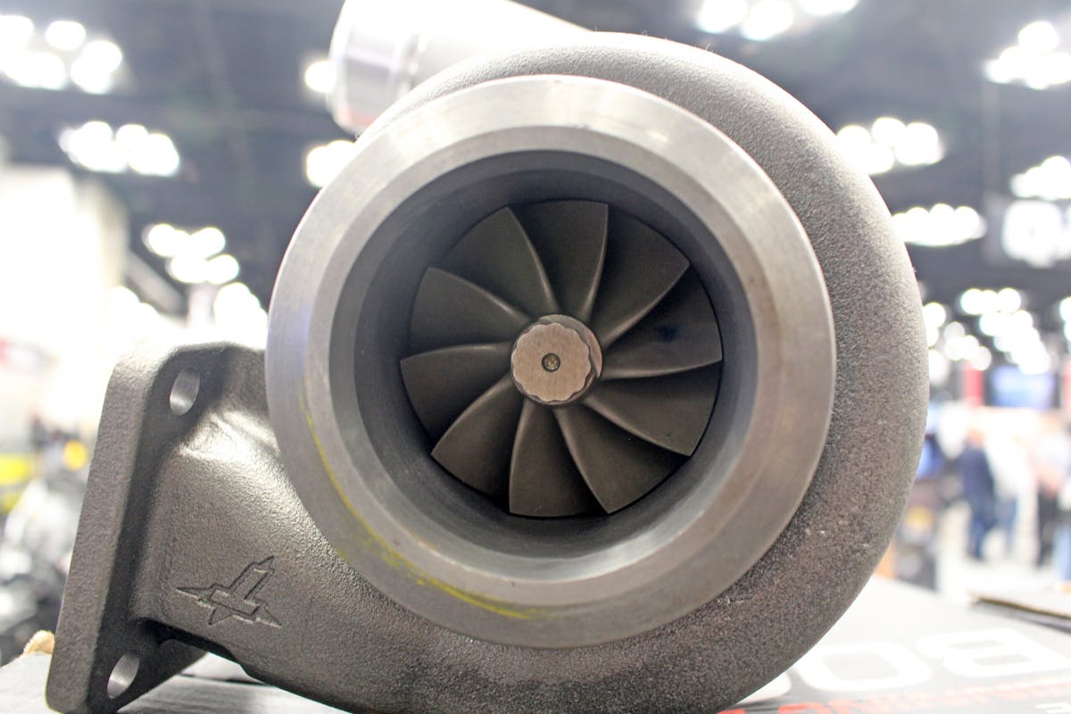 As the turbo’s name suggests, the 6473 has a 64mm compressor wheel, and a 73mm turbine wheel. But there is so much more to the wheels than those two numbers. The compressor wheel is a billet aluminum unit chosen for both strength and advanced blade design. The inducer, as mentioned, measures 64mm in diameter, while the exducer of the wheel measures 87mm. That draws air through a 4.00-inch inlet and pushes it through a 2.50-inch discharge tube.