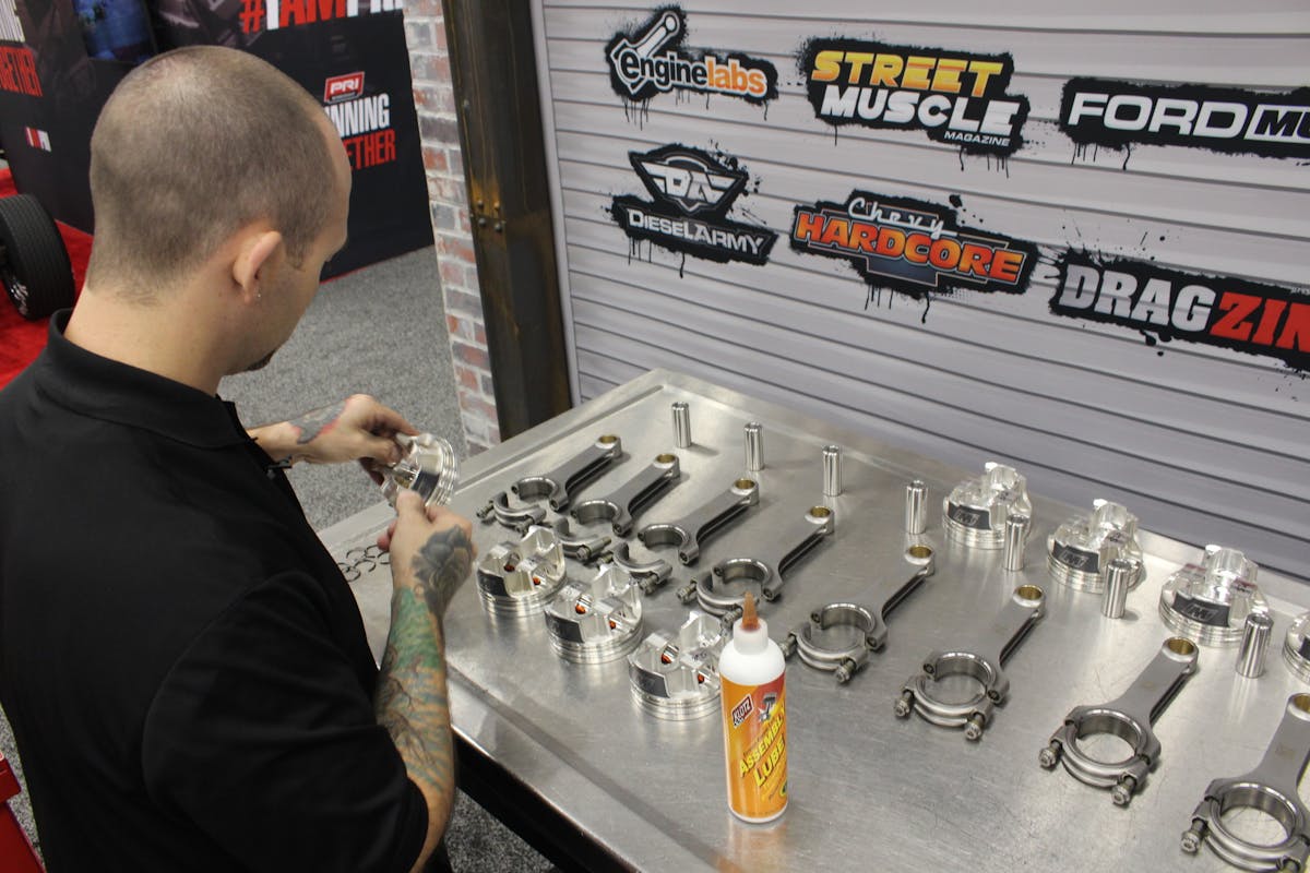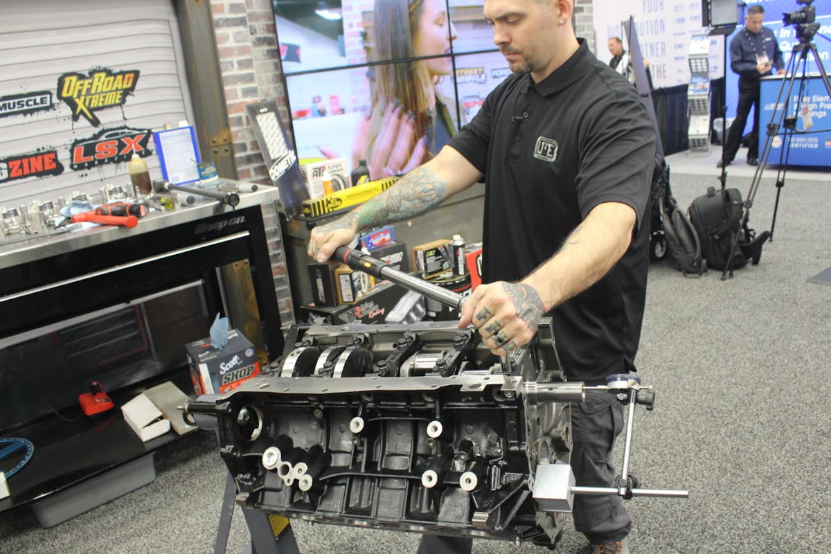 We’re here at the 2022 PRI Show in Indianapolis, Indiana, and the live build of our 1,000-horsepower Ford 7.3-liter Godzilla engine is well underway on the show floor at the Power Automedia booth (#951). Late Model Engines‘ has got the short-block almost completely together, and by the end of the show, the mill will be completely assembled with some of the finest parts the aftermarket has to offer, along with a pair of turbochargers hanging off of it.