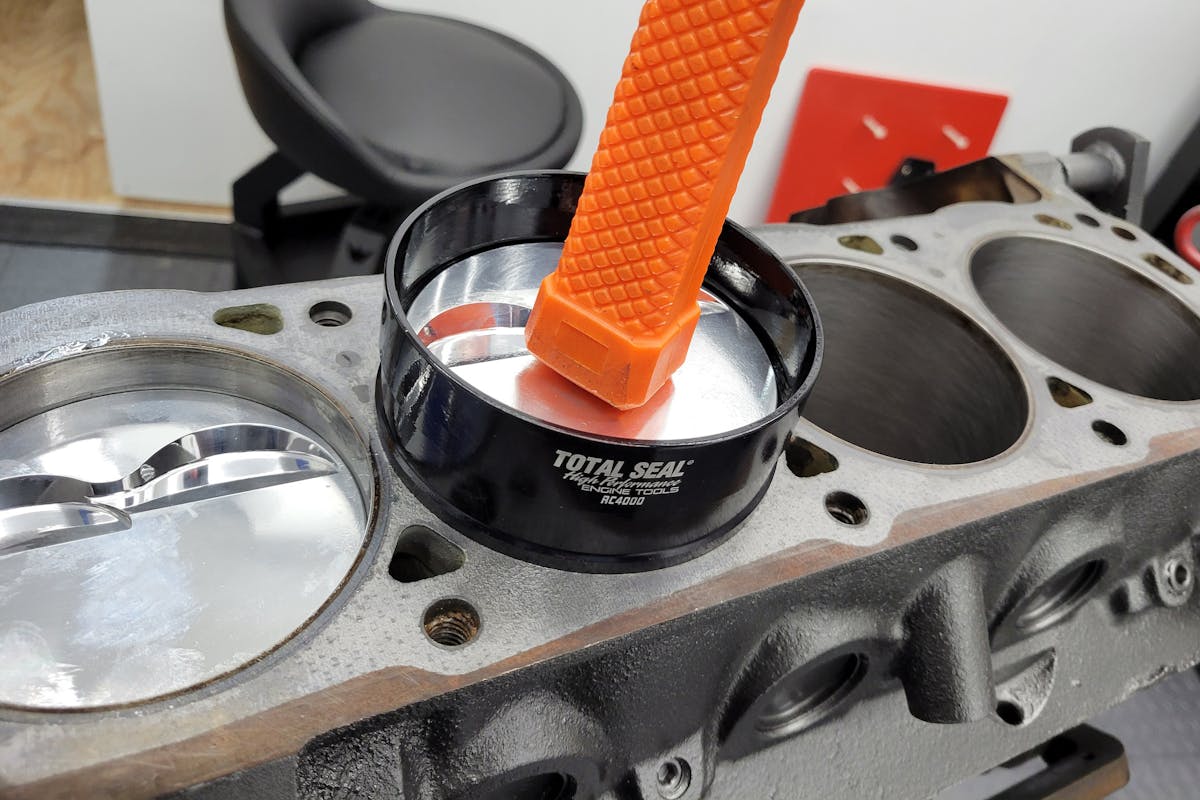 A one-piece — or “fixed bore” — ring compressor, like the ones from Total Seal, makes inserting the piston and rings into the bore easy and straightforward, even if you’re running thin, competition-style rings. By being built to the exact bore size of your engine, there is nothing to get wrong and no real chance of damaging your rings (as long as you aren’t actively trying to break something).