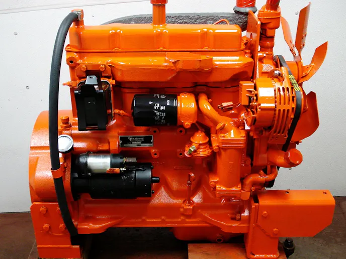 Whether it’s a positive sign for the economy or just a cyclical response, industrial repairs are now a big percentage of Butler-MacMaster’s workload. The shop has also been seeing more marine engines, from lobster boats to family cruisers. Shown here are a couple of examples. Top is a John Deere 276 that the owner wanted orange instead of green. Below is a unique Hercules straight-6 used in a boat restoration.