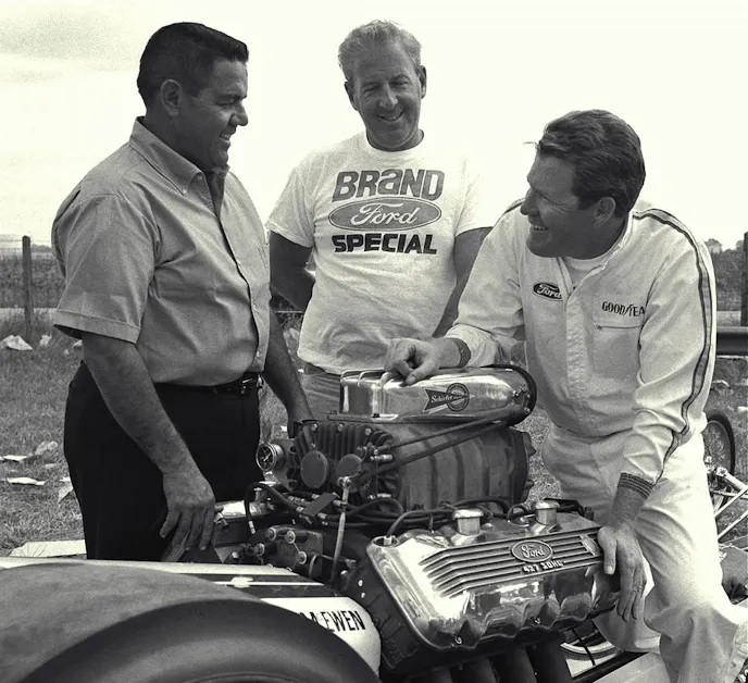 Don Prudhomme replaced McEwen and led the team to its pinnacle at the 1967 NHRA Springnationals held at Bristol. Prudhomme posted the fastest qualifying time and became the first top fuel driver to break into ‘6s at a NHRA national meet. He also ran sub-7second times in three of four elimination runs (shut off early when opponent fouled in the other run). Prudhomme beat fellow Ford driver Pete Robinson in the final.