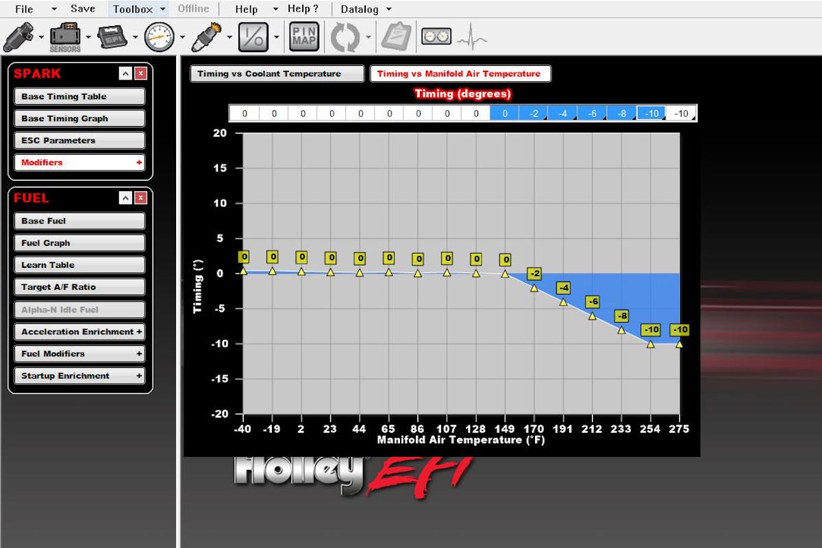 “The Holley Dominator is an outstanding ECU and it does its job as much as you allow it to do,” Bell relates. “The response and correction rate is excellent, and it has quite a few safety and advanced features built in to the software, such as a timing retard based on manifold air temp and/or coolant temperature.”