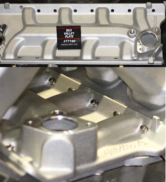 The manifolds are offered in two distinct styles: one with a 4500 footprint for a single Dominator-sized carb, or with a huge open plenum upon which different plates can be fabricated for multiple carbs or throttle bodies. Each manifold comes with a matching valley plate that feature integrated coolant passages. The manifolds can be ordered to fit different deck heights and also with standard or thick flanges.