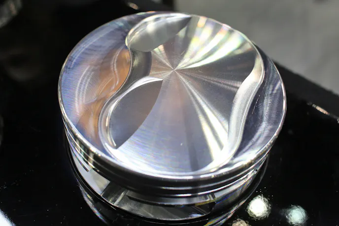 In this application, thin piston rings are not ideal, so Diamond has outfitted the slugs with a .043-inch, .043-inch, 3/16-inch ring stack to handle the immense heat created when the squeeze is activated. The piston is also designed to use a pin button with a support rail for the oil ring.