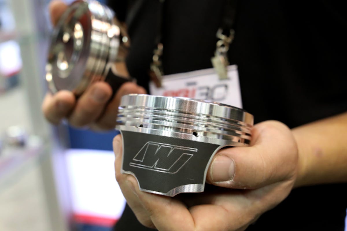 Obviously the General Motors Generation V-series of engines are aimed at the performance sector, so it’s no surprise that the aftermarket is quick to jump on development of parts for them. However, looking in Wiseco’s booth, we also noticed a smaller piston for the Gen V L83 truck engine on display next to the LT1 piston.