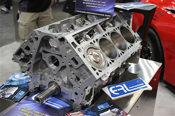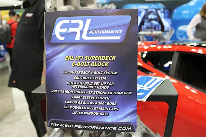 With the new LT range of engines out from Chevrolet everyone is looking to capitalize on the potential of direct injection With horsepower goals skyrocketing, the aftermarket supply of blocks has to keep up. In the booth on display was one example of this increasing enthusiasm for the LT.