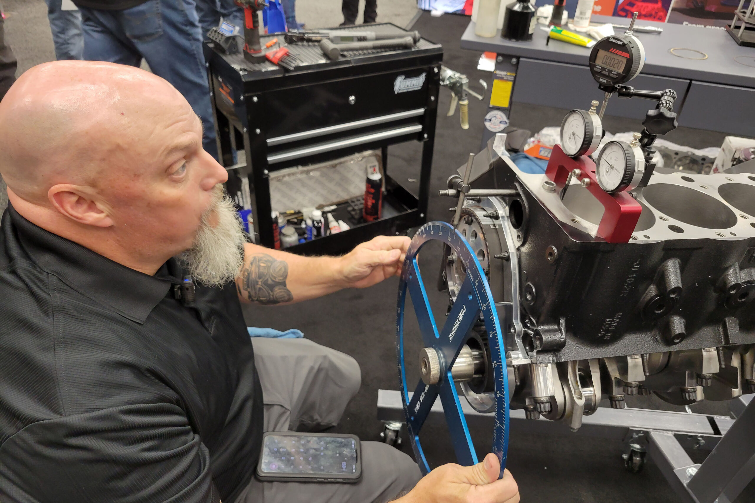 However, like in years past, we are building it live on the show floor. Nick Bacalis of Bullet Racing Engines machined all the components, hauled them out here to Indianapolis, and will spend Thursday, Friday, and Saturday assembling the engine in front of all of the attendees at the PRI Show. Once the engine is completed on Saturday, it will be driven to the University of Northwestern Ohio‘s testing center to be put on the dyno to see just how much power the engine will make.