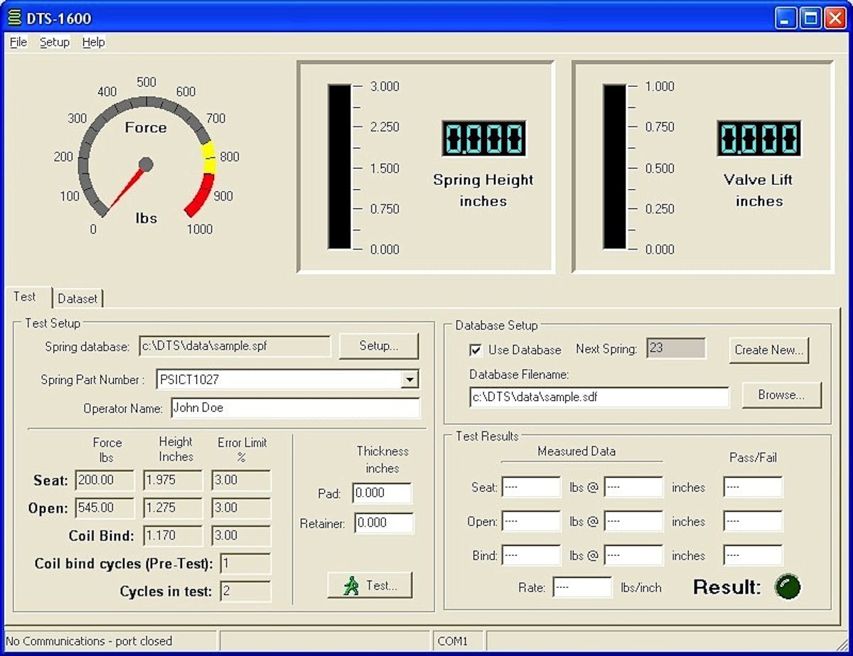 The SF-1600 automatically applies and releases load on the spring while measuring the spring height, and a computer program records all the data. Tests can be stored for further analysis, or a large batch of springs can be tested under the same preset limits to sort out the unacceptable springs from those ready for installation.