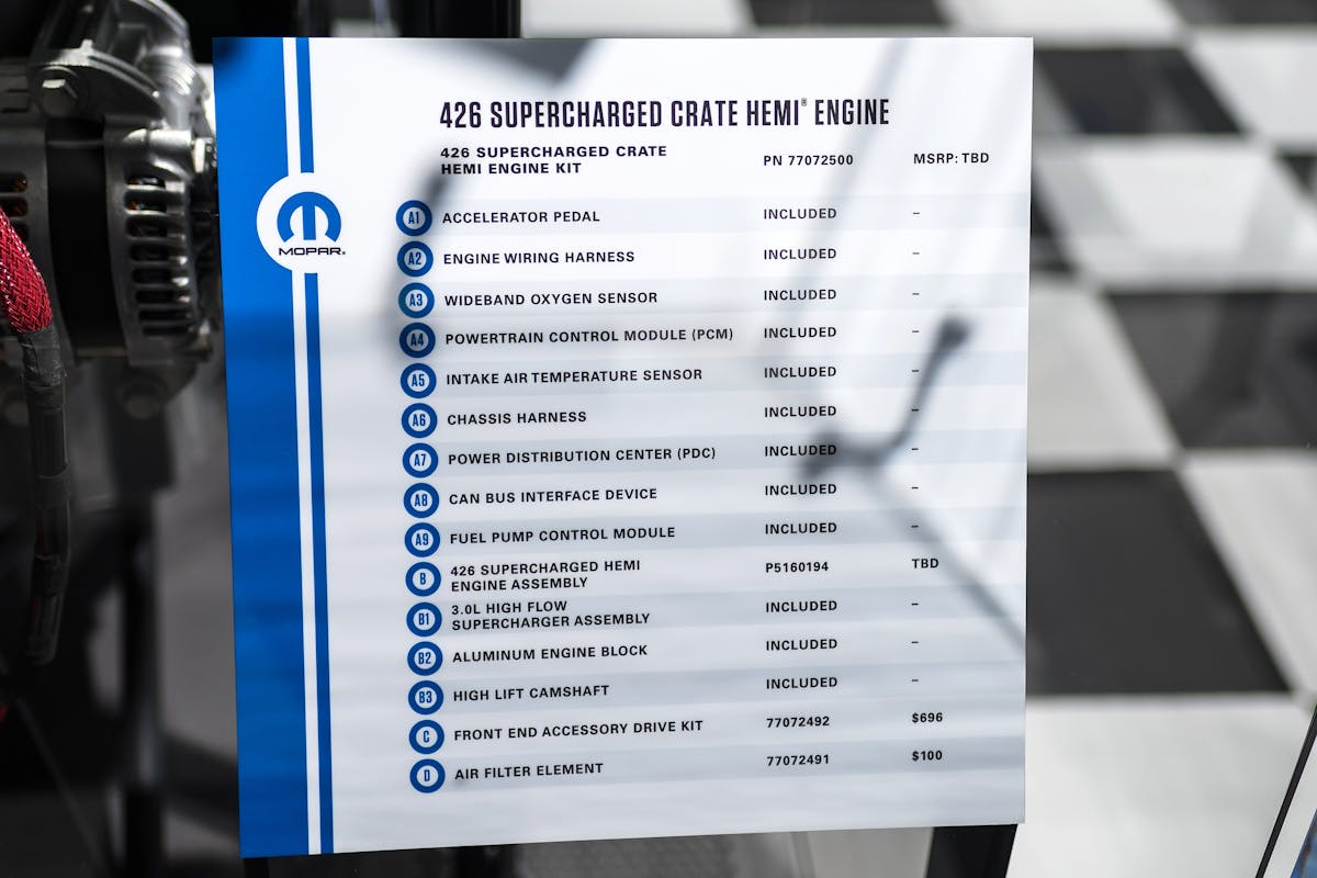 Additionally, Mopar will be offering a Front End Accessory Drive kit, which will include an alternator, power steering pump, belts, and required accessory pulleys for a street car installation.