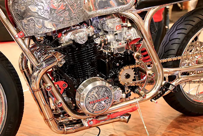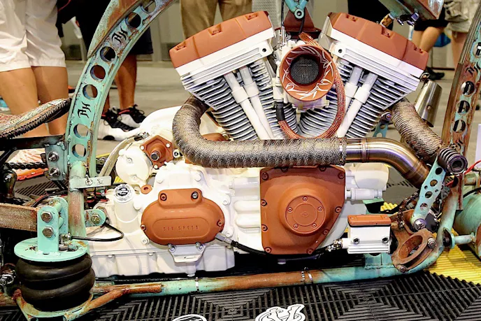 Motorcycles continue show imagination when detailing the engine. And the single boat we found offered an impressive powerplant. There were excellent examples of mechanical symmetry, especially with more turbos and the accompanying air ducts and hardware.