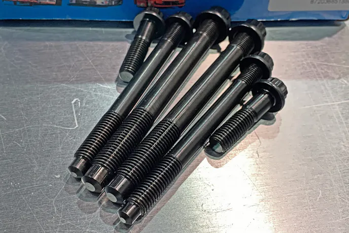 Moving into more performance-oriented fasteners, ARP has a stock connecting rod replacement bolt made out of their ARP2000 material. “We now have a head stud kit as well, to replace the factory torque-to-yield head bolts,” Raschke says. “It uses a 13mm stud, which is a bit odd, so we had to make a custom piece for that. We also have a 4-bolt main kit, that replaces the inner and outer bolts, as well as the side bolts. Those are both ARP2000 as well.