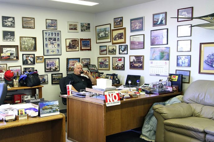 Surrounded by trophies and winners circle photos, veteran engine builder Ron Shaver leans back in his office chair and smiles.