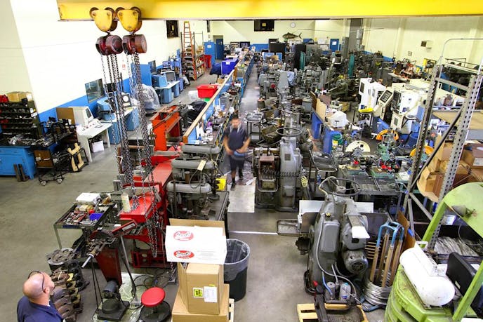 Shaver Specialties offers complete engine building services and also a manufacturing division for select race parts. Note the two dyno cells on the left wall. The engine breakdown area is out of the picture, off to the side on the bottom left.