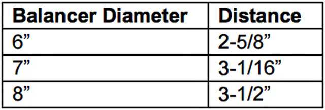 If your balancer diameter isn’t one of the ones listed above, there’s a simple formula for figuring it out yourself. Find the diameter of your harmonic balancer, then multiply your measured diameter by Pi (3.141), divide that value by 360, then finally take that total and multiply it by 50 to get your required distance.