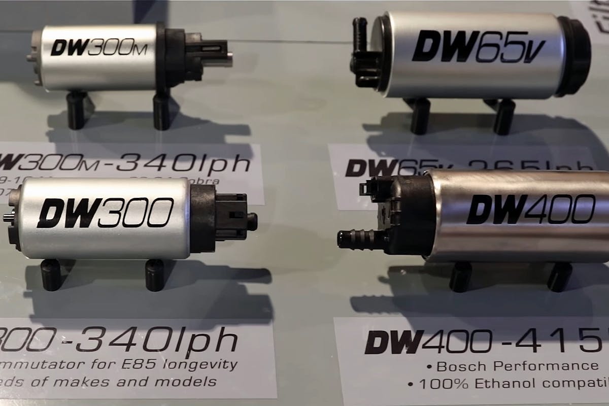 Using a bit of math, you can estimate feeder pump flow requirements. You would need to know pump voltage, rail pressure at WOT, surge-tank volume, max time at WOT, and fuel consumption at WOT. DW provides pump-characterization data (flow vs. pressure vs. voltage) on all in-tank pumps to help with these types of calculations.
