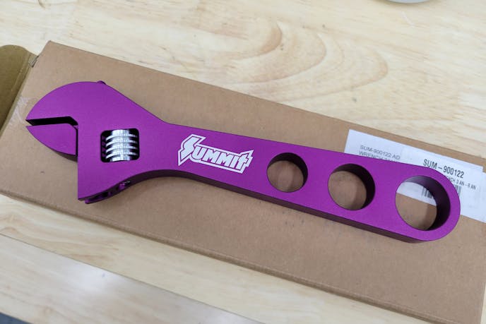 With that understanding, it makes more sense now when we tell you the Summit AN Wrench Kit comes with nine wrenches ranging in size from -3 AN (3/16-inch OD tubing, often found in nitrous applications) all the way up to -20 AN (1-1/4-inch OD tubing, often found in cooling systems), which covers pretty much anything you’ll find in automotive projects. Machined from billet aluminum and color-anodized for wear resistance and easy identification, not only will you be able to securely tighten and loosen any AN fitting you need, you’ll do so without risking damage to the fitting.