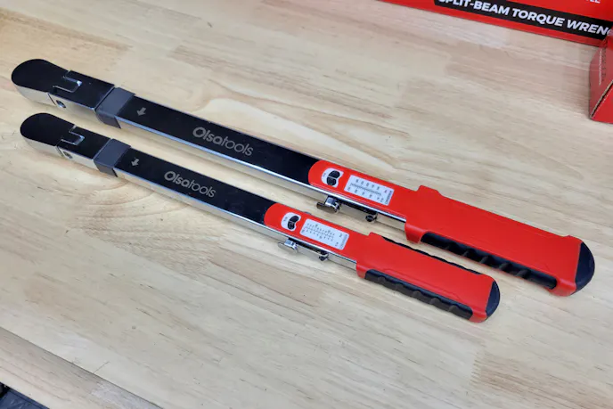 Another neat feature offered by the Olsa split-beam torque wrenches, not usually found at this price point, is rebuild kits for the ratcheting mechanism in the head. “The ratcheting mechanism can wear out with use,” Lange says. “In both wrenches, the ratcheting head is independent of the torque system, and the repair kit does not affect the torque measuring system.”