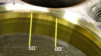 “I want at least three angles below the seat, sometimes four,” says Ertman. “For most applications I try to make those angles 12 degrees more than the previous angle. The width is whatever is required to get the bowl area the size I want based on the valve size. The last angle is whatever it takes to blend in.”