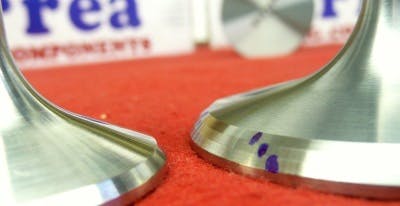 When using titanium valves with steep angles, some type of copper alloy valve seat is preferred. Beryllium copper is popular, but some engine builders avoid it on the exhaust side due to beryllium’s carcinogenic warnings. Other materials such as nickel and silicone are being added to copper to provide the necessary properties for heat transfer and durability. The valves must also be treated to a diamond-like coating (DLC) or chromium nitride coating (CrN) to reduce the chances of metal transfer or micro welding.