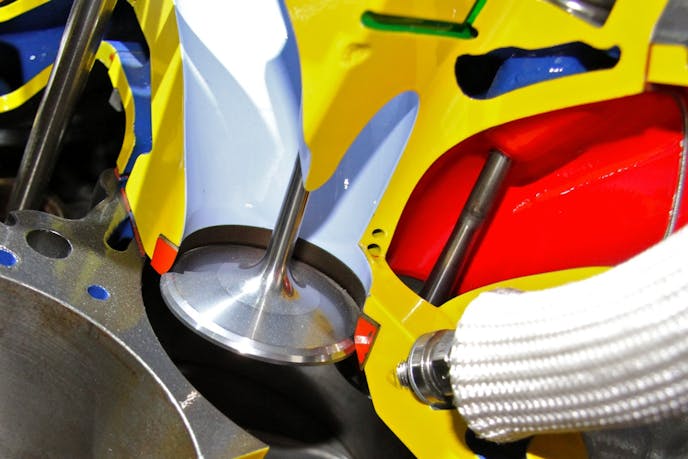 “You want the intake to flow as good as it can as an intake and as crappy as it can as an exhaust. Because, during overlap you want it to be as hard as possible to go back up into the cylinder head. Whatever goes back up the intake just contaminates the fuel for the next cycle.”There certainly isn’t a downside to 45-degree valve-seat angles. There are plenty of winners using a standard 60-45-30 valve job. And in a recent report by Race Engine Technology, there was an in-depth retrospect on the Cosworth CA Formula 1 V8 engine from 2006. Revving to 20,000 rpm, this 2.4-liter engine featured 41.3mm (1.63-inch) solid titanium intake valves with a 1mm (.039-inch) wide 45-degree seat. On top, there were four progressive shallow angles before blending into the stem. The intake also featured four different coatings to improve durability. On the exhaust side, there was 35.0mm (1.38-inch) sodium-cooled titanium valve with a 2mm wide 42-degree seat. So, the fastest-spinning V8 in racing used a 45-degree angle on the intake and even shallower on the exhaust.