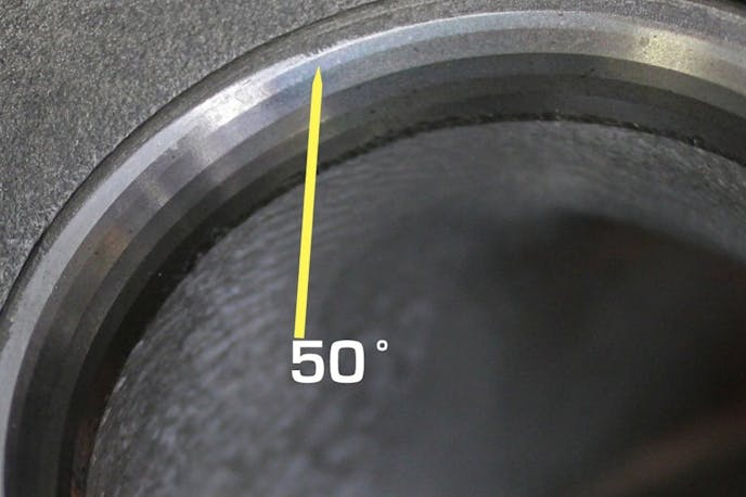 “Top Fuel runs nothing but 55-degree with real thick margins on the exhaust side,” says Urrutia. “You want to corner-radius those margins so it doesn’t prone itself to hot spots.”