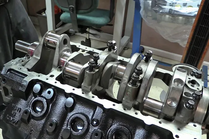 Because of that, Stillwell opted for the nodular iron main caps. Like the billet upgrade, there are four bolts per cap, but unlike the billet upgrades, only the outer bolts on the center three mains are splayed-bolt design. The .600-inch-thick deck surface and priority-main oiling systems are both improvements over a stock block, along with the cylinder wall thickness and the built-in clearance for stroker crankshafts.